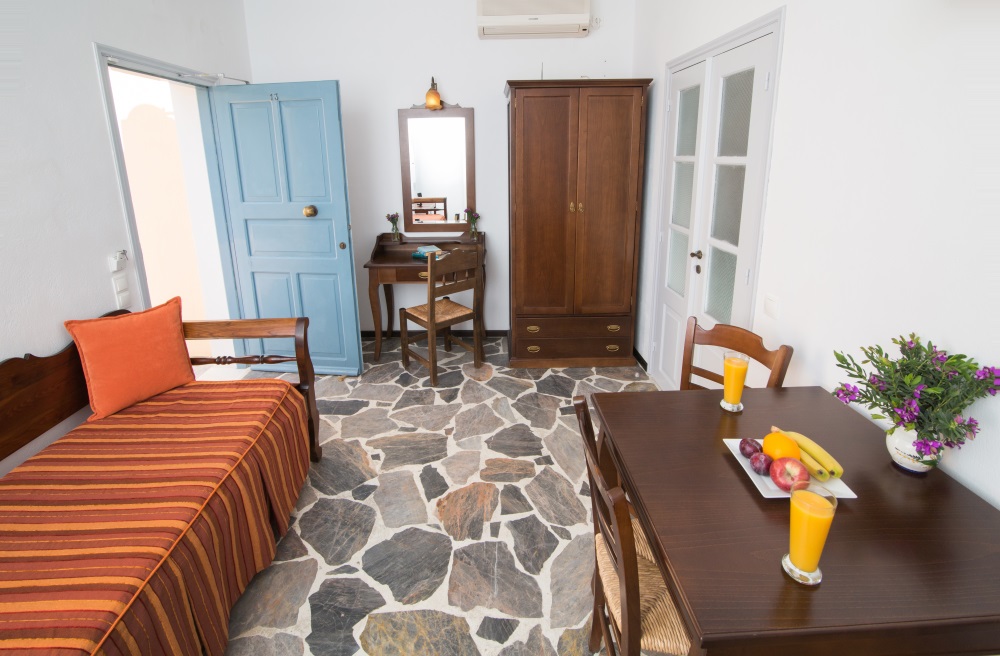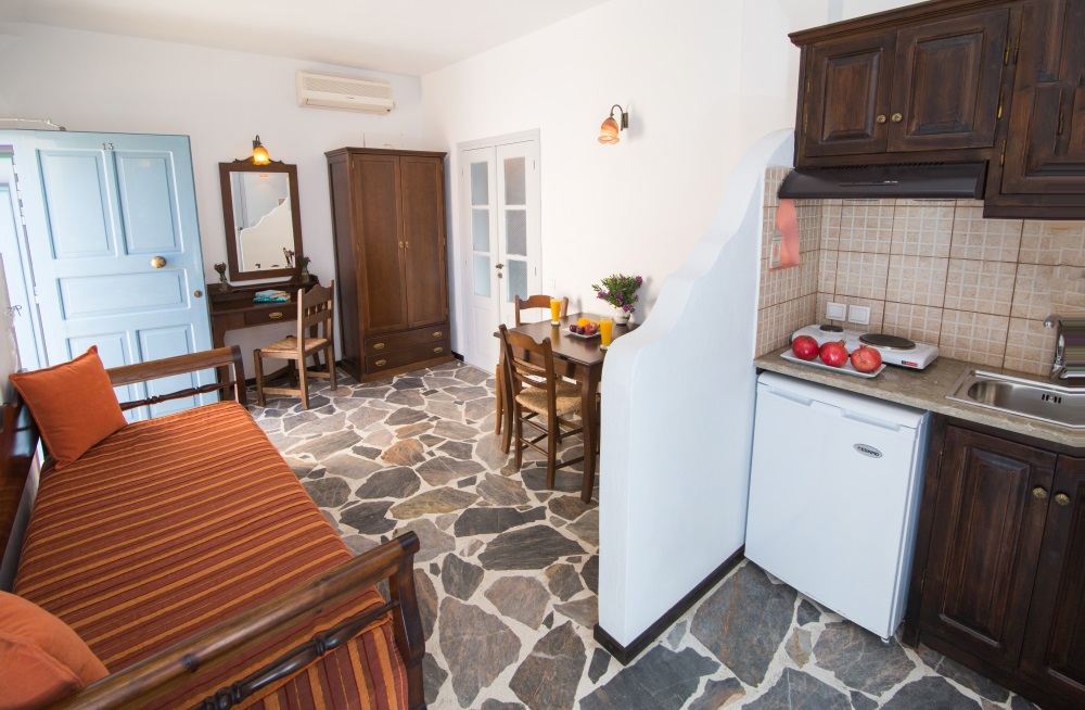 Enjoy moments of relaxation and calm in your private balcony with view over the swimming-pool and the Aegean sea and let yourself enjoy the beauty of the landscape that is unfolded in front you.