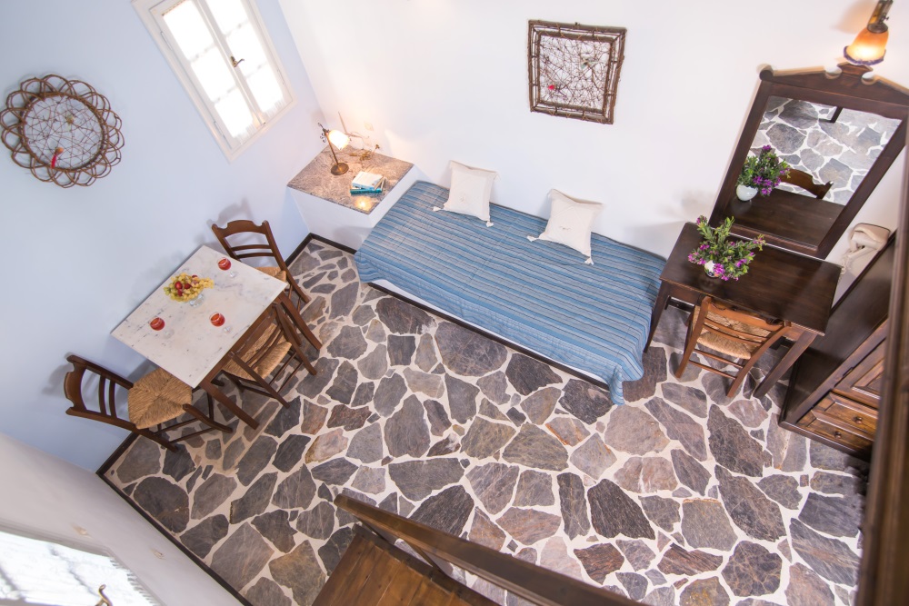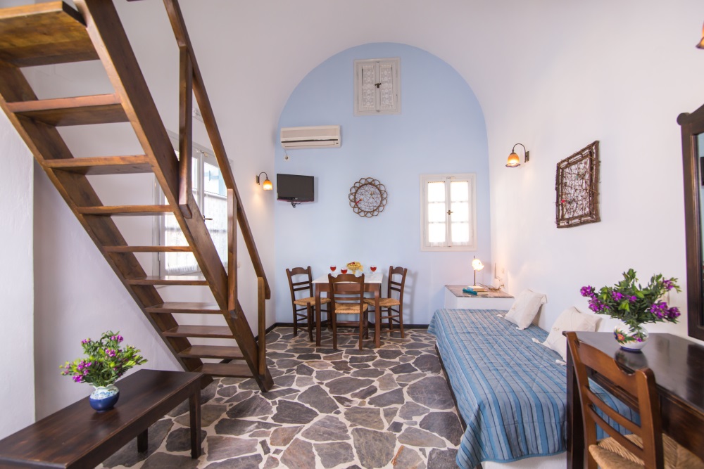 The traditional maisonette can accommodate until 3 persons. It is located on the upper floor of the building and it is separated to two floors.