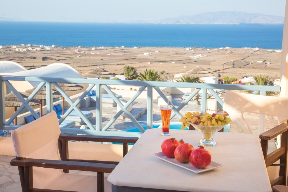 Enjoy moments of relaxation and calm in your private balcony with view over the swimming-pool and the Aegean sea and let yourself enjoy the beauty of the landscape that is unfolded in front you.